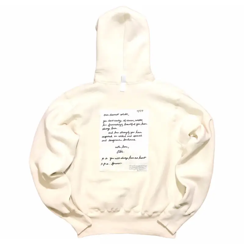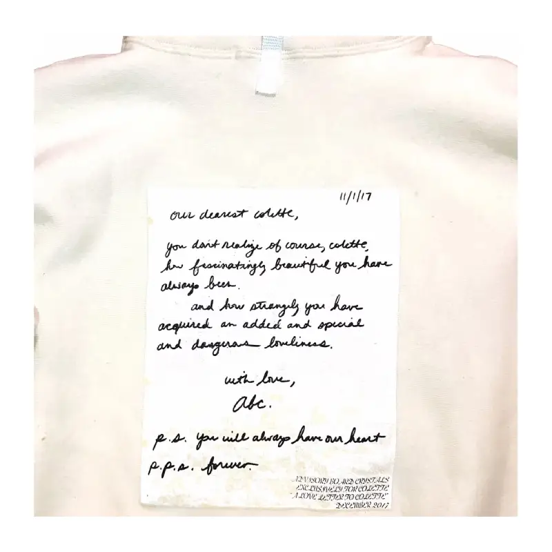 The design references excerpts from the love letters of Richard Burton and Elizabeth Taylor, a tribute to the store’s deep influence. Detailed with the colette logo, the classic ABC. logo, and a signature pull-tab, this hoodie embodies the end of an era.