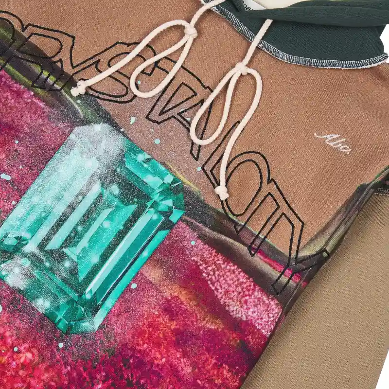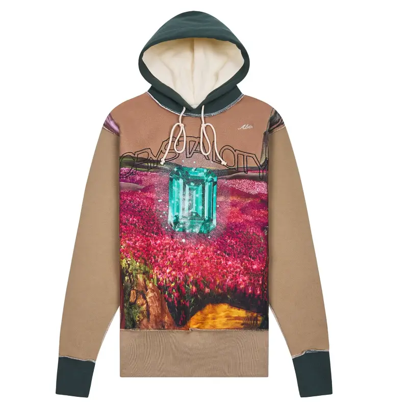 Embrace intentional streetwear with the Advisory Board Crystals May Birthstone Hoodie: 05 “May.” This premium, light brown piece is crafted from custom dyed, heavyweight fleece, reflecting ABC’s commitment to wellness and spirituality. The design features a complex, layered graphic incorporating over eight techniques, including embroidery, puff print, and fabric overlay.